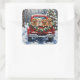 Sticker Carré Lhasa Apso Christmas Red Truck Holiday