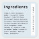 Ingredient list product label in a modern, minimalist style with your company name rotated on the side inside a white box on a light dusty blue or any color background. Colors can be changed in the design tool.