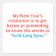 Un graphique humoristique du Nouvel An avec la citation astucieuse : "Ma résolution du Nouvel An est de mieux faire semblant de connaître les paroles de Auld Lang Syne." Le texte rose corail et bleu vif ressort sur un fond blanc net, créant un design joyeux et ludique. Parfait pour les collections légères, les publications sur les réseaux sociaux ou les décorations festives célébrant l'esprit, l'humour et le plaisir des fêtes.