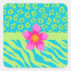 Sticker Carré Lime Green & Turquoise Zebra & Cheetah Pink Flower