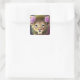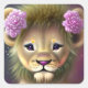 Sticker Carré Lion mignon bébé avec fleurs roses Graphique