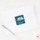 Sticker Carré Livres scolaires dinosaure bleu marine et nom pour