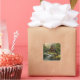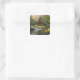 Sticker Carré Log Cabin, Stream, Mountains and Deer Nature Art