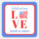 Sticker Carré LOVE Aquarelle Drapeau Américain NOM Mariée