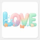 Glossy soft pastel “LOVE” text filled with hearts, coral, bubbles, and ocean charm — perfect for romantic or beach-themed art.