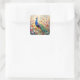 A beautiful illustration of a blue and turquoise peacock in a field of meadow of pink, purple, blue and red flowers.