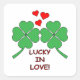 Heureux amoureux. Dessins de trèfle à quatre feuilles avec des formes cardiaques flottant sur eux.