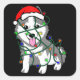 Sticker Carré Lumières de Noël Husky Décoration drôle Husky