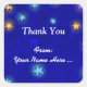 Un autocollant de Merci personnalisé avec script blanc et lettres italiques et élégant art vintage d'étoiles colorées sur un arrière - plan bleu gravé.