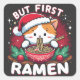 Sticker Carré Mais le premier Ramen, chat mignon avec le chapeau