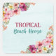 Sticker Carré Maison de plage tropicale Fleurs roses Floral Bota