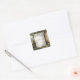Step into a realm of majestic beauty and fantasy with this enchanting forest thank you sticker. The design features a stunning, highly detailed painterly landscape of a mystical, ancient woodland. A colossal, gnarled tree stands sentinel on the right, its branches reaching towards the sky, framing a breathtaking view into a misty valley surrounded by towering cliffs. A serene stream meanders through the foreground, which is overflowing with incredibly detailed rocks, lush ferns, wildflowers, and foliage in rich greens and warm autumnal hues. This captivating scene surrounds a soft, misty central area, enclosed by a minimalist, thin gold rectangular frame that adds a touch of understated elegance. These stickers are perfect for businesses that evoke awe, nature's grandeur, and storytelling, such as fantasy authors or illustrators, landscape photographers, boutique travel agencies specializing in wilderness adventures, museum gift shops, or artisanal brands inspired by ancient forests. This versatile design can also be used to beautifully seal envelopes for unique weddings, themed events, or as a sophisticated accent on party favors and gift wrapping.