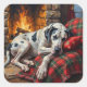 Sticker Carré Majestic Great Dane Asleep by Fireplace Cozy