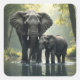 Sticker Carré Maman et bébé éléphant dans la forêt africaine-Rai