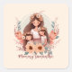Sticker Carré Maman et filles avec Arrière - plan de fleurs