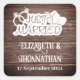 Sticker Carré Mariage Campagnard en Bois Rustique Juste Mariés