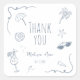 Ces autocollants de remerciement pour enterrement de vie de jeune fille dessinés à la main sur le thème de la plage présentent un fond blanc croquant avec des dessins côtiers bleus poussiéreux fantaisistes tels que des coquillages, des vagues, des étoiles de mer, des lunettes de soleil et des étincelles. Au centre, un texte modifiable indique « Merci », avec des espaces personnalisables pour le nom de la mariée et la date de l'événement en dessous. Parfaits pour décorer les faveurs, les enveloppes, les friandises, les sacs de bienvenue, etc., chaque détail est entièrement personnalisable pour correspondre à votre thème de mariage sur la plage.