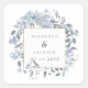 Élégants autocollants de mariage, avec des hydrangées bleues et blanches et des feuilles autour d'un cadre carré. Personnalisez avec les noms et la date du mariage. Parfait pour les faveurs et les scellés d'enveloppe.
