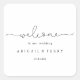 Cet élégant autocollant simple de calligraphie mariage d'accueil carré est parfait pour un mariage rustique. Le design sobre et élégant présente une typographie de script classique et sophistiquée en noir et blanc. Ces étiquettes sont parfaits pour les sacs de bienvenue et les mariages de destination des clients de l'hôtel.