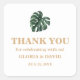 Ajoutez une touche de paradis à votre journée spéciale grâce à nos Stickers Carrés Mariages Tropical Palm Leaf ! Ces élégants stickers en forme de carré présentent des feuilles de palmiers verts vibrants, disposés dans un design chic et d'inspiration tropicale. Parfaits pour les mariages de destination, les fêtes de plage ou les noces d'été, ils sont un complément polyvalent et élégant à votre décor mariage. Un beau motif tropical à la feuille de monstère luxuriante, idéal pour créer une ambiance sereine et exotique. Il est possible d'ajouter des initiales et une date mariage. Ces autocollants sont non seulement pratiques mais aussi un beau souvenir que vos invités adoreront. Que vous planifiez une cérémonie intime au bord de la plage ou une grande fête tropicale, ces autocollants vous aideront à faire cravate de votre thème sans effort.