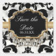 REMARQUE : Il s'agit d'une carte imprimée à plat, sauf l'autocollant ou le sceau de la date, il n'y a pas de couches surélevées ou de métal ou de bijoux réels dedans. Cette image dessinée graphiquement semble bien réelle. PALETTE DE COULEUR : blanc, noir et or look métallique. COLLECTION DE DESIGN : Il s'agit d'une collection d'invitation de douches nuptiales Couple vraiment élégante et sophistiquée avec un style vintage moderne et formel! Montrée ici en blanc crémeux sur noir ébène, l'invitation a un aspect dimensionnel élégant et dramatique. Pour une belle touche de finition sélectionnez l'enveloppe d'invitation correspondante du même design. Il s'agit d'une oeuvre d'Audrey Jeanne Roberts, créée à partir d'anciens motifs damassés à l'aspect vintage, d'un cadre magnifique avec des "bijoux" à l'aspect diamant, suspendus à l'intérieur et revêtus d'un ruban doré. Il y a des cartes de réponse RSVP, des invitations à la réception, le programme de mariage, des instructions de conduite, les cartes d'hébergement de l'hôtel, l'affranchissement, des autocollants et plus encore disponibles pour correspondre. S'il y a un produit que vous voudriez avoir créé qui n'est pas offert juste message nous!