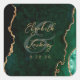 Sticker Carré Mariage de script d'agate d'or Emerald Green
