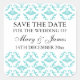 Sticker Carré Mariage Élégant Enregistrer La Date Bleu Damas