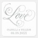 Ajoutez une étincelle raffinée à vos faveurs de mariage avec cet autocollant carré de monogramme de script d'amour argenté. Un "Amour" orné en calligraphie argentée élégante est associé aux noms des mariés et à la date du mariage sur un fond blanc propre. Le script métallique frais crée un look sophistiqué et intemporel. Idéal pour les sacs de faveurs, les boîtes-cadeaux, les bouteilles de vin ou les sceaux d'enveloppe. Tout le texte est entièrement personnalisable.