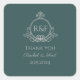 Sticker Carré Mariage élégant vert calligraphie argent Merci