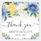 Sticker Carré Mariage Fleurs Jaunes et Bleues à l'Aquarelle