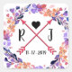 Sticker Carré Mariage floral violet Monogramme Conception de la