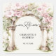 Des fleurs roses sur une arche classique en marbre. M. et Mme avec un coeur. Personnalisez et ajoutez vos noms et votre date de mariage.