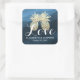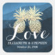 Sticker Carré Mariage Merci Chic Bleu Or Ananas Couple