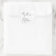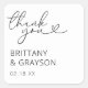 Des autocollants minimaux de mariage en noir et blanc avec les mots "merci" dans une police de caractères élégante qui incorpore un coeur d'amour, vos noms, et la date du mariage.