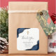 Cet autocollant de remerciement de la première communion présente des motifs d'agate bleu marine d'aquarelle découpés avec de la parties scintillant fausse or dans deux coins. Une fausse croix de feuille d'or apparaît au-dessus des mots "Merci" dans le script d'écriture manuscrite gris charbon sur un arrière - plan blanc. Personnalisez-le avec le nom de l'invité d'honneur, l'occasion et la date dans la fonte grise fusain.