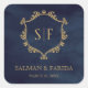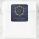Sticker Carré Marine Blue Gold Crest Monogramme mariage Faveur