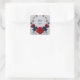 Sticker Carré marine & fleurs rouges gris feuille couronne merci
