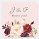 Sticker Carré Marsala de Bourgogne et Monogramme floral clair -