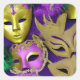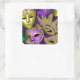 stickers gras Mardi avec masques masqués violets et or avec plumes et perles.