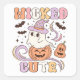 Ce design « Méchamment Mignon » jette un sort de douceur avec un fantôme à chapeau étoilé perché sur une citrouille souriante. Entouré de chauves-souris, de volutes et de magie pastel, c'est le mélange parfait de sinistre et de mignon pour les amateurs d'Halloween de tous âges.