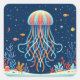 Sticker Carré méduse marine/plage/côtière