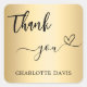 Un arrière - plan à l'allure fausse or, du texte noir. Personnalisez et ajoutez votre nom. Avec le texte : Merci + un petit coeur.