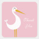 Ces autocollants de remerciement personnalisés sont d'adorables ajouts à tout ballotin de baby shower, étain ou sac. Chaque autocollant comporte une cigogne blanche. Disponible en rose et bleu. © Mood 4 Cute
