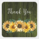 Sticker Carré Merci de Mariage de tournesol vert rustique