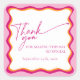 Poignée de Merci moderne pour Fête des mariées avec design de bordure ondulée rose et orange. Modifiez facilement le texte et la date et faites vos sacs de faveur spécial. Invitation correspondante, cartes de boîtier et panneaux sont également disponibles dans cette collection.