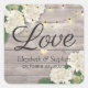 Sticker Carré Merci mariage Bois rustique Lumières à cordes flor