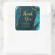 Sticker Carré Merci Mariage turquoise Blue et Gold Agate