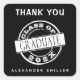 Un diplômé noir moderne vous remercie les autocollants avec un libellé blanc "classe" à l'intérieur d'un cercle qui ressemble à un timbre. Entrez simplement le nom du diplômé et l’année d’obtention du diplôme. Vous pouvez modifier la couleur de l'arrière - plan en cliquant sur le bouton personnaliser. Des produits de coordination sont disponibles dans notre magasin.