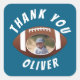 Sticker Anniversaire de enfant Photo Merci de Football Américain. Un autocollant d'anniversaire sur le thème du football avec un message de remerciement, un nom et une photo sur une balle de football. Idéal pour les enfants qui aiment le football et le sport.