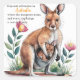 Une mère kangourou se tient debout dans un cadre naturel, avec son bébé joey regardant dehors de sa poche. Le bébé kangourou est petit et curieux, sa tête juste visible, tandis que la mère semble protectrice et calme. Entourés de verdure, ils incarnent le lien étroit entre la mère et l'enfant dans le royaume animal. La scène se sent paisible et nourrissante, saisissant un moment de connexion dans la nature.